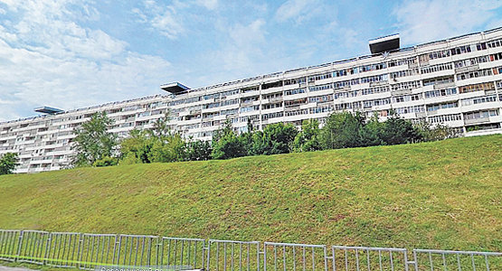 Дом дугообразной формы рядом с Ходынским полем, один из любимых проектов Юрия Лужкова. Задумывался как идеальный «город в городе», однако жильцы довольны не всем – жалуются на состояние сдаваемых квартир и собирают митинги с требованием обустроить парк.