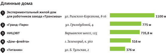 Второй номер в нашем списке сегодня претендует на звание самого длинного жилого дома в Европе (оспаривая первенство «китайской стены» в Отрадном). Про третий поговаривают о подземном микрореакторе. Четвертый может похвастаться тем, что без потерь прошел все стадии утверждения проекта. Пятый переживет землетрясение и наводнение — если вдруг.