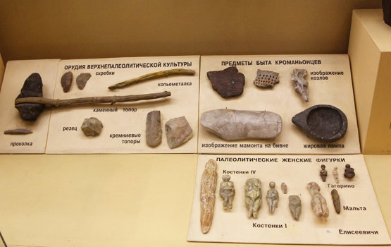В зале «Происхождение и становление человека» можно посмотреть на портретные реконструкции наших предков, сделанные антропологом Герасимовым. В витринах выставлены каменные орудия, которыми пользовались первобытные люди, и даже первые предметы искусства: рисунки на бивне мамонта и вырезанные из костей мамонта женские фигурки, называемые палеолитическими Венерами.