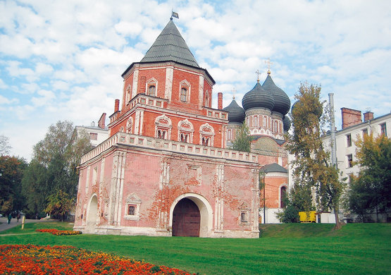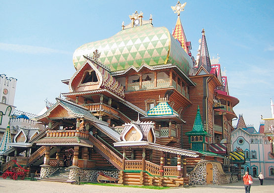 Эта архитектурная фантазия создана по мотивам царских дворцов, некогда стоявших на острове неподалеку, а также в «Коломенском» на юге Москвы. Прежний «сказочный лабиринт» с куполами, башнями, лестницами и разноцветными крышами был разрушен несколько веков назад, но сохранились его изображения. Деревянный терем был построен около двадцати лет назад и используется для проведения банкетов и балов.