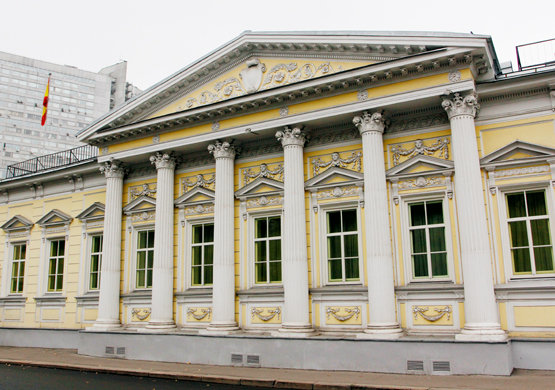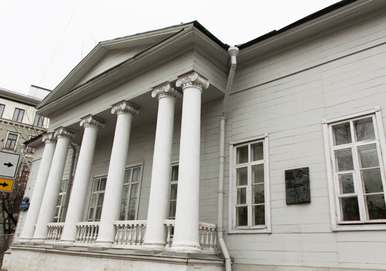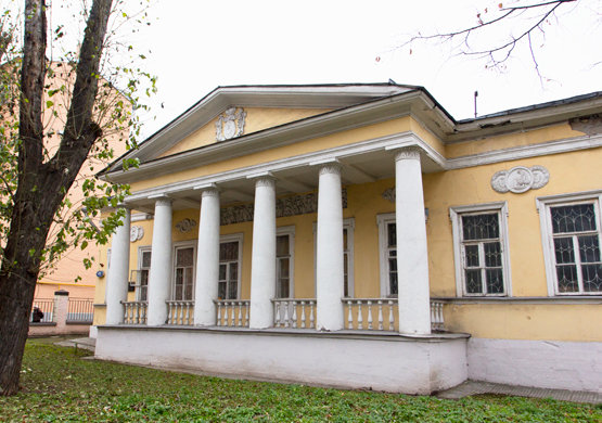 Почти в самом конце Остоженки сохранилась еще одна деревянная усадьба начала XIX века — городская усадьба Лошаковского–Всеволожского. Как и многие усадьбы того периода, фасад дома украшает шестиколонный портик, образующий открытую галерею. На фронтоне — герб Всеволожских.