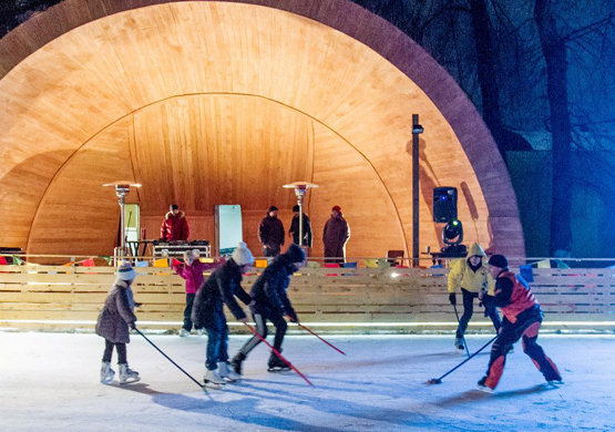 Другие развлечения: Прямо вокруг катка в парке каждый год устраивает выставку Музей ледяных скульптур. Кроме того, есть площадка для скейтбордистов и катания на BMX, пользующаяся популярностью круглый год, и тренажеры на свежем воздухе для морозоустойчивых спортсменов. А для самых маленьких — большая новая детская площадка.