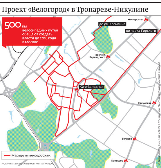 Карту велодвижения в Тропареве-Никулине еще должен утвердить департамент транспорта. Для обсуждений деталей схемы в августе чиновники вместе с велоактивистами организуют «круглые столы» с серией лекций и дискуссий, на которые будут приглашены местные жители. «Есть технические вещи, которые надо учитывать. Например, ширину дорог, переезды, интересы автомобилистов и пешеходов», — пояснил «МН» руководитель рабочей группы при департаменте Алексей Митяев. Он отметил, что проектом по велосипедизации заинтересовались муниципальные депутаты Гагаринского района.