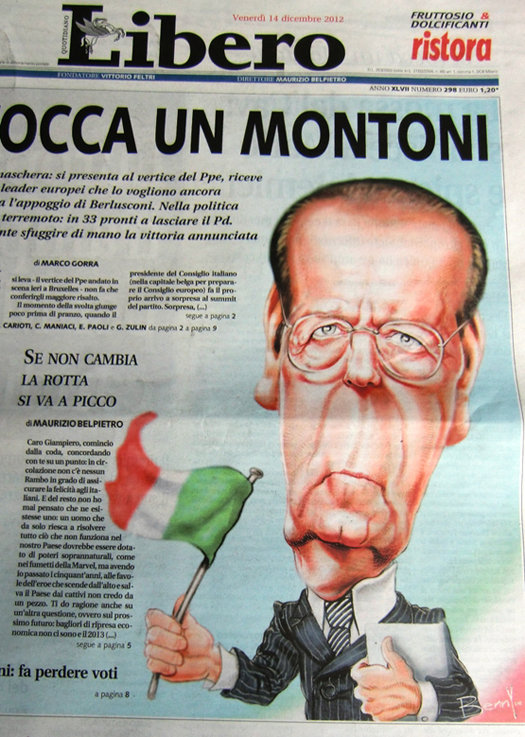 Охочие до выдумок журналисты из газеты Libero поместили портрет этого загадочного синьора, представляющего собой гибрид Монти и Берлускони