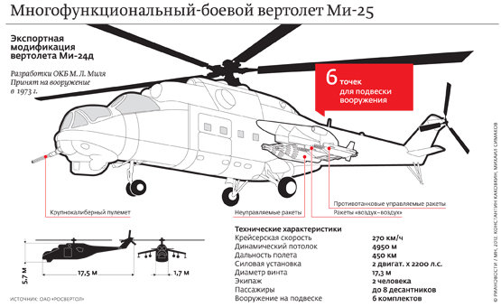 На прошлой неделе госсекретарь США Хиллари Клинтон выступила с резким заявлением, обвинив Москву в поставках Башару Асаду боевых вертолетов. Российский МИД это обвинение опроверг. «Мы сейчас завершаем выполнение давно подписанных и оплаченных контрактов. Все эти контракты касаются исключительно средств противовоздушной обороны», — заявил глава российского МИДа Сергей Лавров. Позже выяснилось, что Клинтон имела в виду не новые контракты, а обслуживание по старым контрактам на калининградском заводе проданных Сирии еще в 80-х и 90-х годах вертолетов Ми-25, Ми-24 и Ми-17.