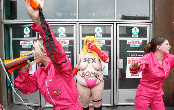 3 мая 2012 года активистки Femen провели акцию «Секс-бомбу под Евро-2012», в которой они «указали на гуманитарную катастрофу, связанную с секс-туризмом и проституцией в период проведения чемпионата».