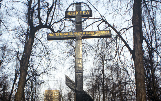 Памятный крест на месте захоронения юнкеров в Москве (район Сокол)