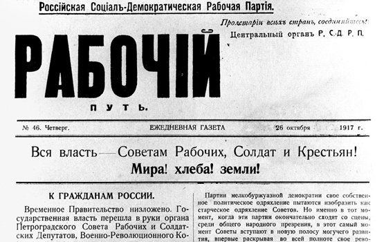 7:00 Красногвардейцы и агитаторы большевиков распространяют по городу свою газету «Рабочий путь», в которой опубликовано воззвание ВРК и партии к рабочим.