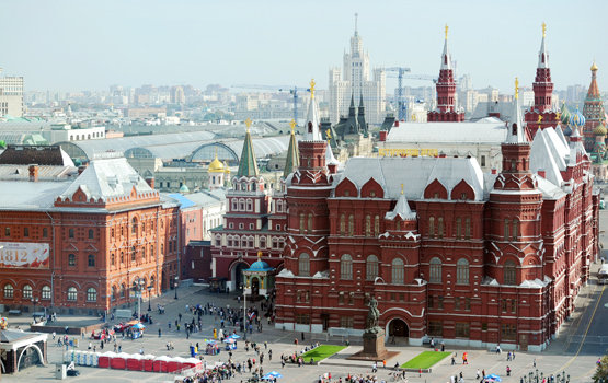 Слева бывшее здание Мосгордумы, в центре Иверские ворота (реконструкция), справа Исторический музей. Этот комплекс зданий был последней позицией белых перед Кремлем
