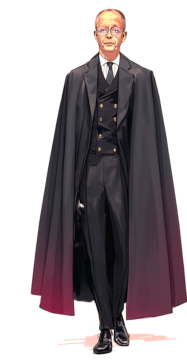 Вариант 2: Необходимость политического маневрирования — мантия меняет цвет (например, с черно-красного (привязка к партийным цветам ХДС + АдГ) на красно-желтый (СДПГ)), чтобы запутать оппонентов / притвориться союзником и успеть принять нужные решения. Ограничение: каждая смена цветов ослабляет защитные возможности мантии.