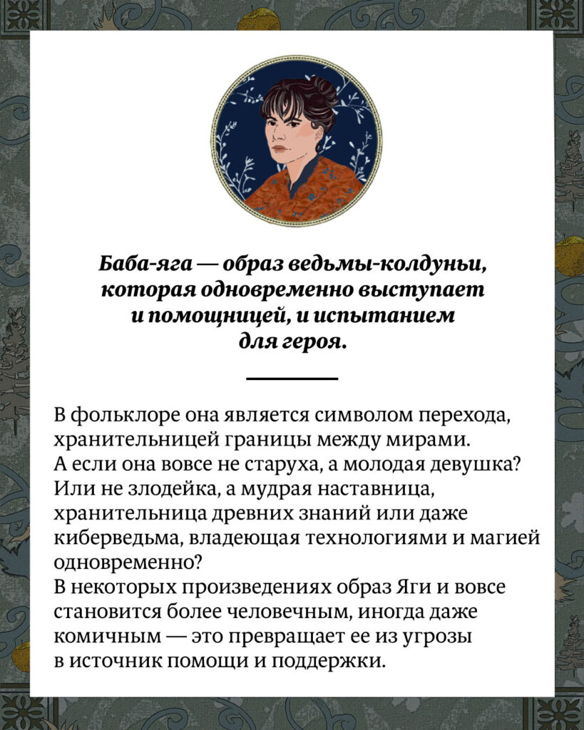 Это те самые образы, к которым мы привыкаем с самого детства и которые для нас являются отражением ключевых культурных и психологических смыслов. Читателя привлекают классические герои — Иван-дурак, Баба-яга, Кощей, Змей Горыныч, Василиса Премудрая, Иван-царевич, богатырь, — наделенные новыми чертами и сохранившие при этом фольклорную индивидуальность.