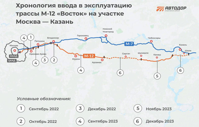 - Трассу М-12 начали строить с 2020 года. До 21 декабря движение было по всем участкам, кроме Арзамас – Шумерля и последнего участка в Татарстане. В 2024 году магистраль продлят до Екатеринбурга, позднее — до Тюмени.