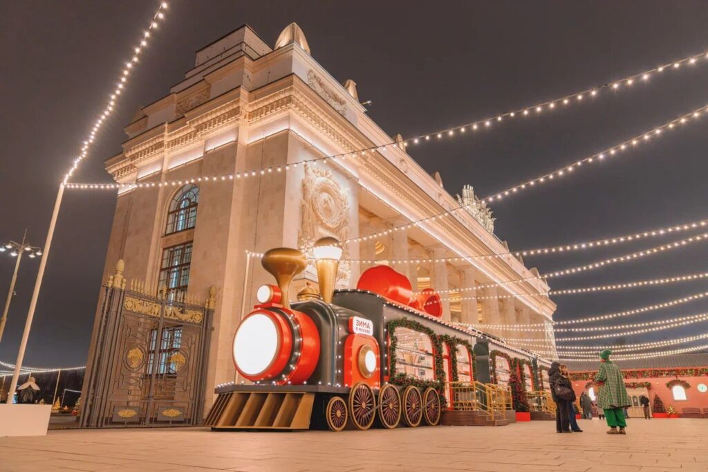 Главной достопримечательностью катка Парка Горького в этом сезоне стал павильон проката, стилизованный под здание вокзала. Ледовую площадку впервые обустроили перед аркой Главного входа. В центре искусственного катка посетителей встречает сияющая новогодняя ель.