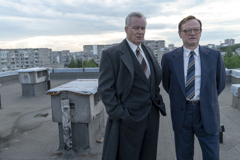 Мини-сериал режиссера Йохана Рэнка (в главных ролях Джаред Харрис, Стеллан Скарсгард, Пол Риттер) — совершенно другое дело. В картине, сделанной в большом бюджете, с тщательным изучением архивов и привлечением консультантов (в том числе очевидцев трагедии и ликвидаторов), предельно серьезно воспроизводится сформированный в первые недели после Чернобыля нарратив о советской системе как главном виновнике происшедшего. Сериал завоевал «Эмми» 2019 и «Золотой глобус» 2020 года как лучший мини-сериал, а Стеллан Скарсгард получил «Золотой глобус» за лучшую мужскую роль второго плана.
