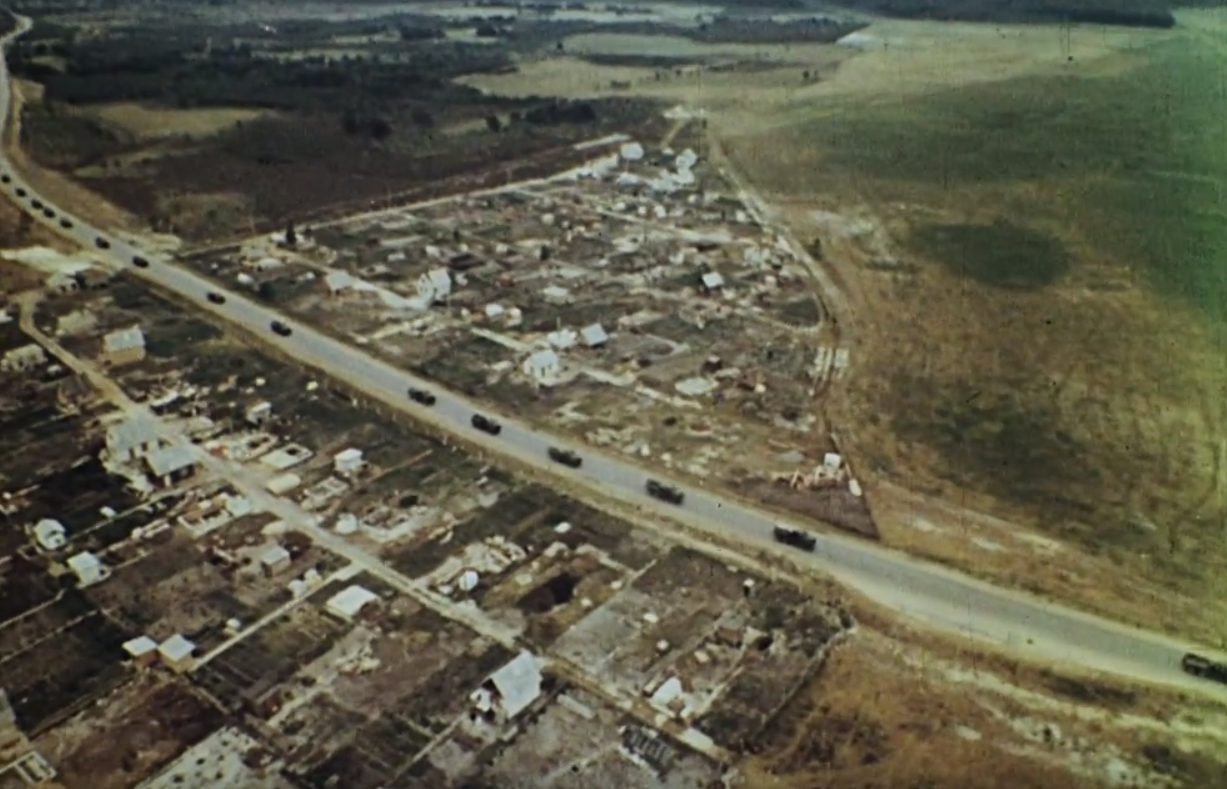 Когда мы подъезжали к г. Припяти, поразило небо. Уже километров за 8–10 до станции было видно над ней малиновое зарево. Известно, что атомная станция с ее сооружениями, трубами, из которых видимым образом ничего не вытекает, представляет собой сооружение очень чистое, аккуратное. А тут вдруг — как металлургический завод или крупное химическое предприятие, над которым огромное, малиновое в полнеба зарево.