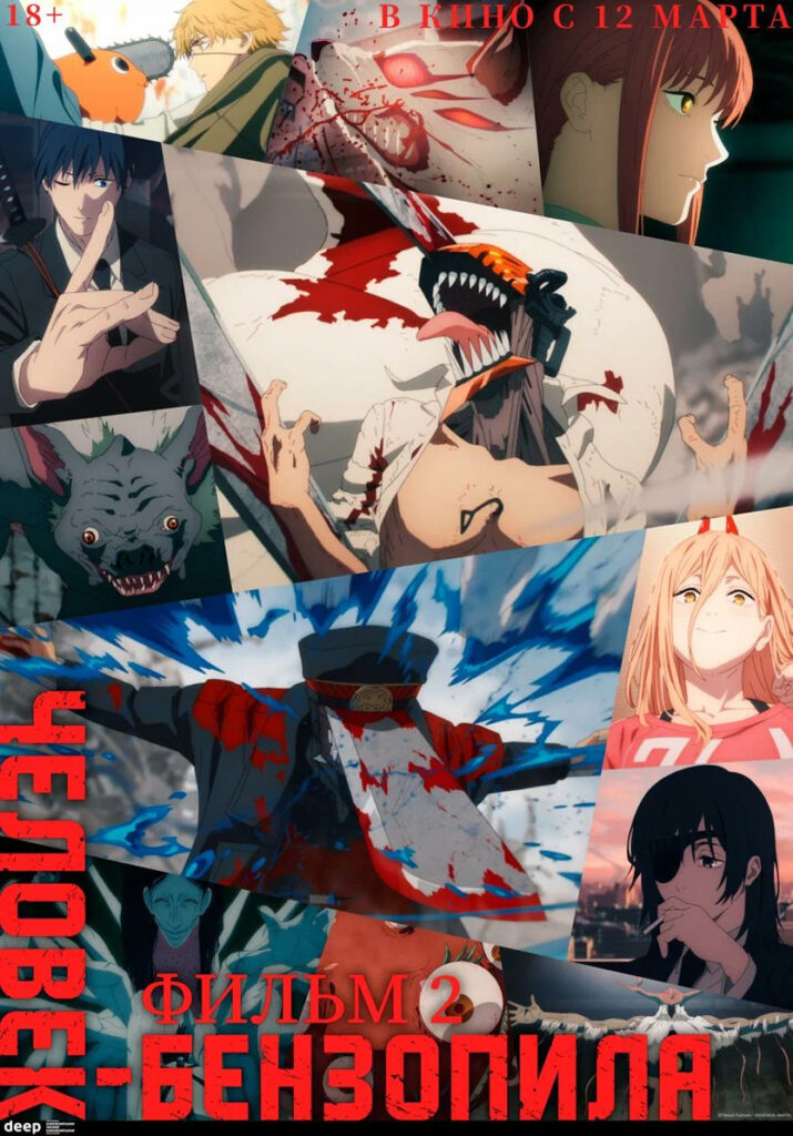 Фильм-компиляция по аниме-хиту 2022 года «Человек-бензопила». Кинокомпания «Пионер» и DEEP поделили сезон на две части и выпустили рекап: первый фильм начали показывать 26 февраля, а второй выйдет 12 марта. Это переработанные эпизоды оригинального сериала — с эксклюзивными сценами, которые не вошли в первоначальные 12 эпизодов. В центре сюжета — подросток Дэндзи, у которого на месте рук и головы периодически появляются бензопилы. Герой аниме охотится на демонов, а в свободное время вкусно ест и развлекается в женской компании.