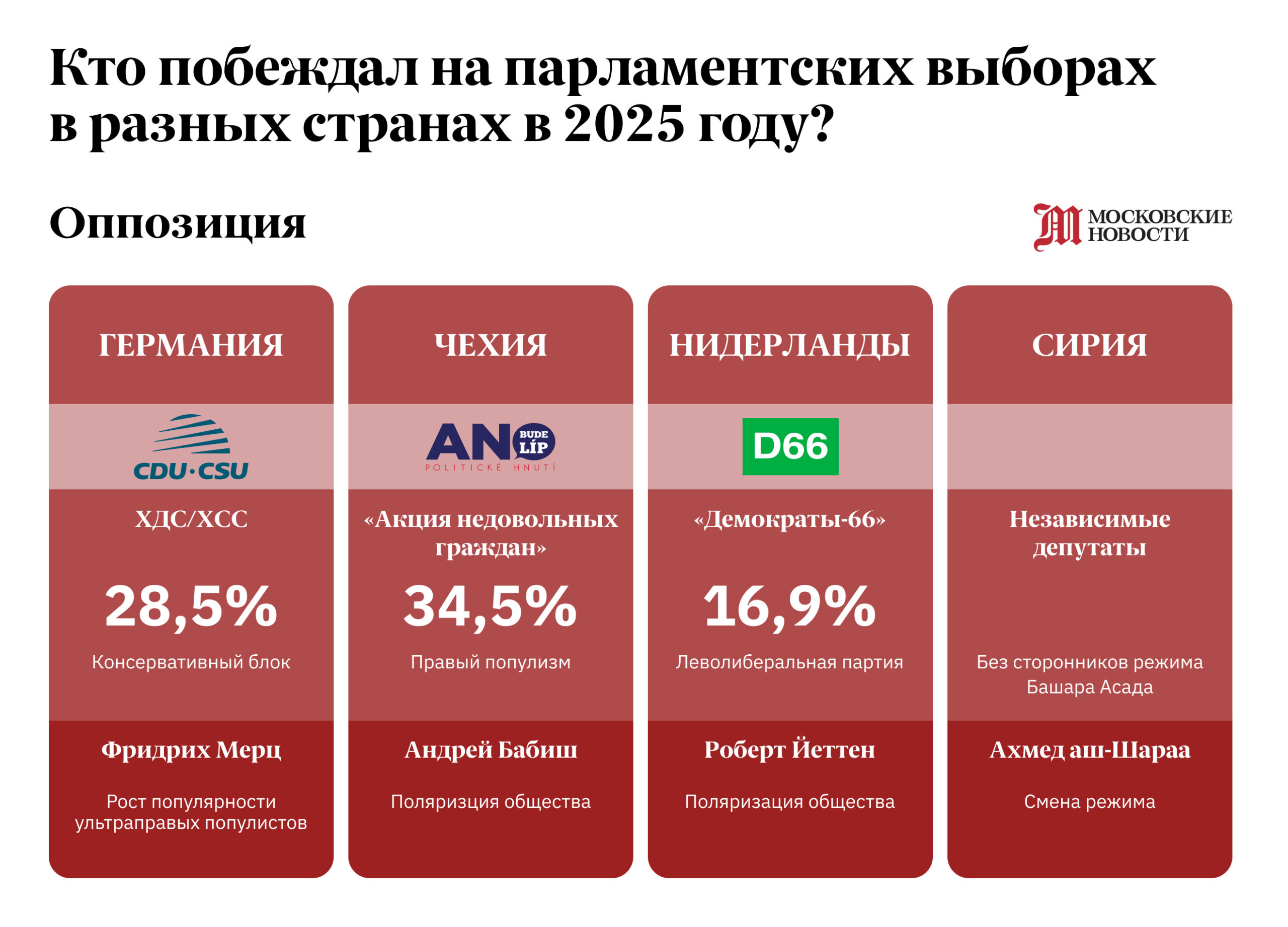 Обещания ужесточить миграционную политику, реформировать экономику через сокращение налогов и бюджетных расходов позволили ХДС/ХСС и АдГ вырваться вперед в предвыборной гонке. Большинство голосов получил оппозиционный консервативный блок Христианско-демократического союза и Христианско-социального союза (ХДС/ХСС) во главе с Фридрихом Мерцем — 28,5% голосов. Ультраправая АдГ впервые заняла второе место и получила 20,8%, а бывшая правящая Социал-демократическая партия (СДПГ) Олафа Шольца стала только третьей — 16,4%.
