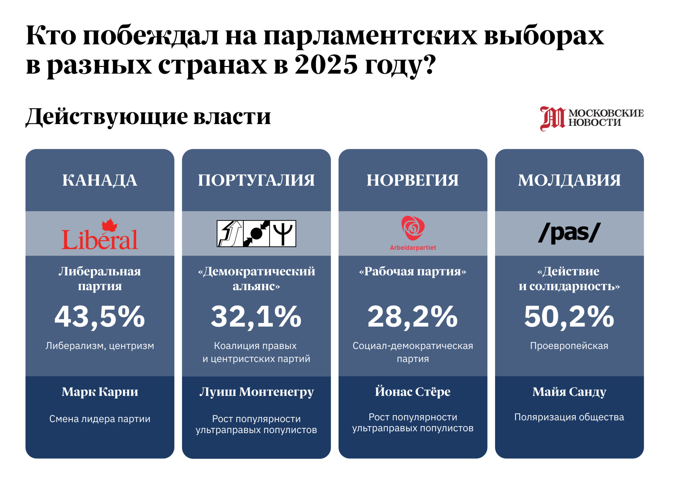 В своей предвыборной кампании Карни четко сформулировал ответные меры на угрозы со стороны США и сделал ставку на диверсификацию торговых партнеров. Например, свой первый визит в качестве главы правительства он совершил во Францию и Великобританию, а не в США, что европейские СМИ расценили как четкое политическое заявление об укреплении европейских альянсов. В результате Либеральной партии удалось получить на выборах наибольший результат (43,5%), но полученных в парламенте мест не хватило для формирования правительства большинства. Пока правительство Карни остается стабильным, а его отношения с администрацией Трампа значительно улучшились.