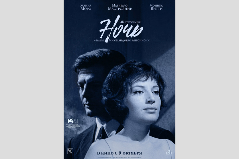Фильм классика европейского авторского кино, итальянского режиссера Микеланджело Антониони. В «Ночи» он показывает сутки из жизни успешного миланского писателя и его жены, которые, несмотря на внешнее благополучие, все больше отдаляются друг от друга.