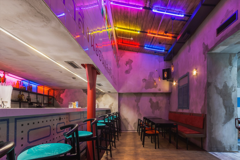 Бар Neon Monkey — это культовое место для любителей эстетики андеграунда и неона. Место поражает интерьером: дизайн выполнен в стиле киберпанк с яркими вывесками, зеркалами и граффити. Бар подойдет для тех, кто хочет окунуться в атмосферу лихих нулевых и сделать яркие фотографии. Находится Neon Monkey по адресу ул. Большая Дмитровка, 32, стр. 2.