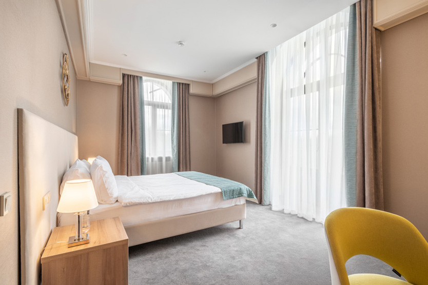 Особенность отеля — насыщенная развлекательная программа: квесты, йога-туры, гастрофестивали. Зимой заливают каток и строят ледяные горки.