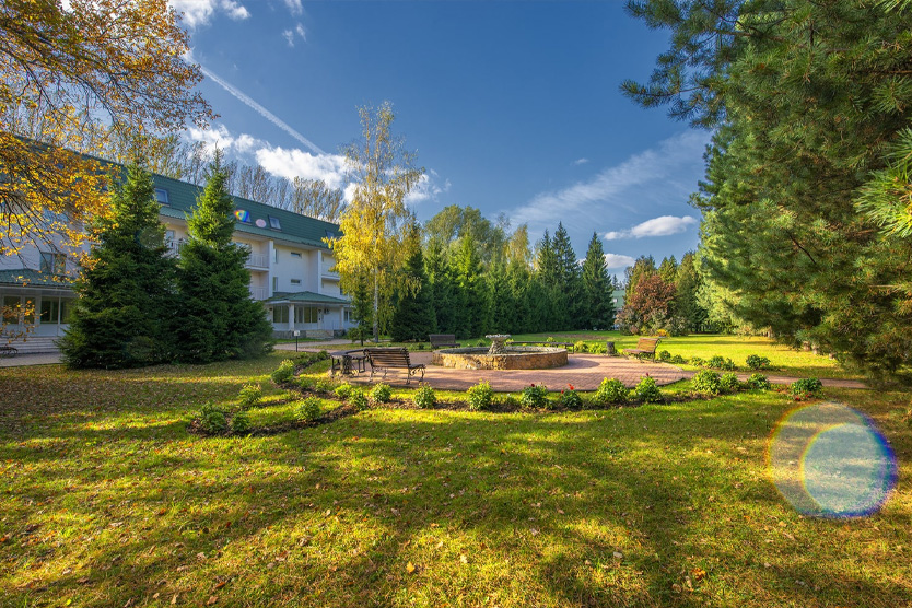 Один из самых популярных отелей Подмосковья, расположенный в 60 км от столицы. Территория отеля занимает несколько гектаров ухоженного парка с прогулочными аллеями и зонами отдыха. Гостям предлагают размещение в основном корпусе с номерами категории стандарт и люкс. Для отдыха доступны и отдельные коттеджи для больших компаний. Для ценителей глэмпинга на территории отеля готовы палатки с удобными кроватями и отоплением. Инфраструктура включает два ресторана, spa-центр с хаммамом и криосауной, открытый подогреваемый бассейн, спортивные площадки для любителей тенниса и волейбола, а также детский городок с анимацией.