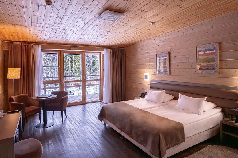 Уютный горный курорт в стиле альпийских шале, расположенный в хвойном лесу. Отель предлагает комфортабельные номера из окон которых можно увидеть поле, где Виктор Васнецов писал знаменитых «Богатырей». Зимой гости могут кататься на лыжах по подготовленным трассам или арендовать снегоходы, а летом — отправиться в походы по живописным окрестностям. Особой популярностью пользуется глинтвейн-бар с панорамным видом на лес. В отеле создана романтическая атмосфера — идеальное место для пар, желающих уединиться.