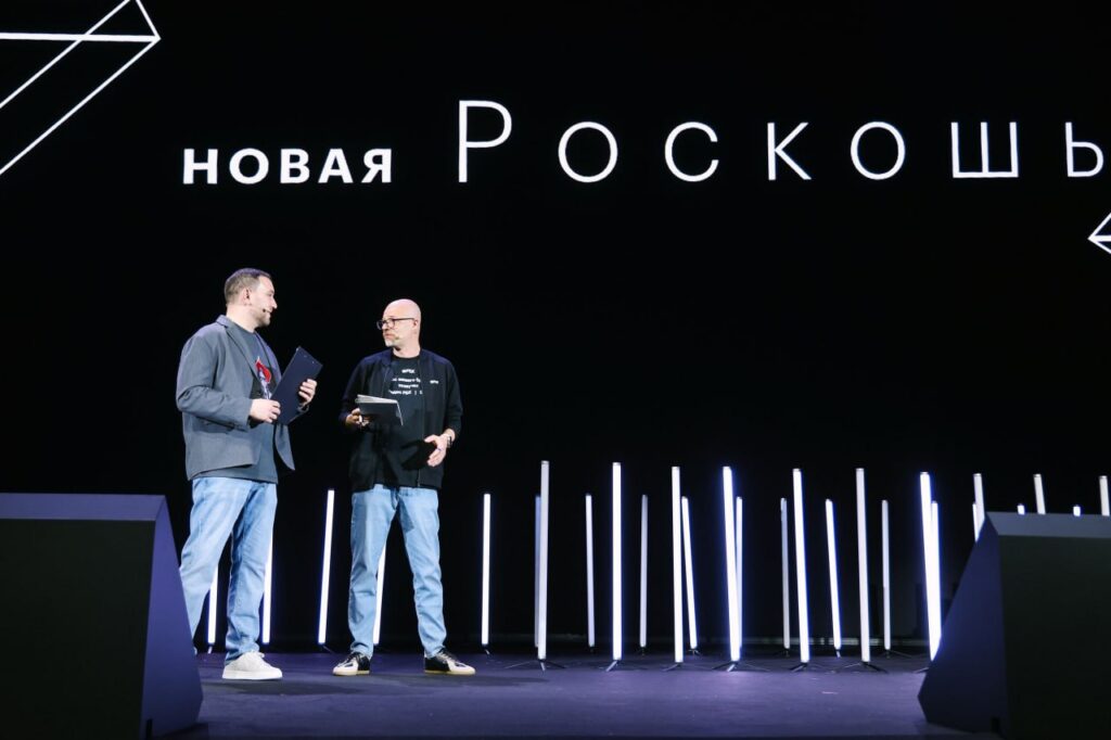 11 ноября в рамках Национального рекламного форума РБК представил новый формат — шоу-интервью «Четыре комнаты: новая роскошь». Не просто обсуждение трендов, а визуальное путешествие по пространству смыслов, где роскошь измеряется тишиной, подлинностью, осязаемостью и присутствием. На глазах публики менялись декорации: графика перетекала из одной темы в другую, а световые акценты подчеркивали атмосферу и идею каждой «локации». Ведущие провели зрителей через четыре метафорические комнаты, каждая из которых раскрывала свою грань новой роскоши.